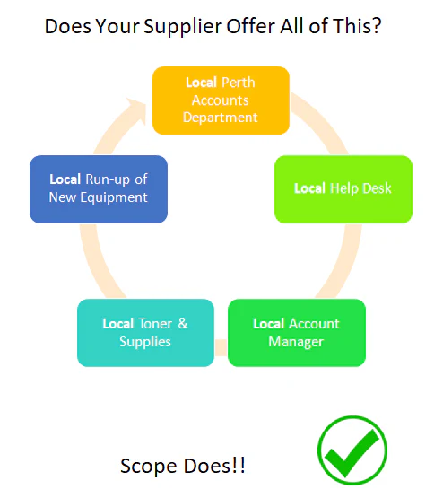 Scope Business Imaging has been a leader in printer/photocopier document management solutions for Western Australian businesses since 1986. We started the business because there was a need for quality, prompt and reliable service to support business that relied heavily on printers and photocopiers to produce valuable documents. Headquartered in Perth, Scope has extensive local representation in the key regional locations of Bunbury, Karratha and Port Hedland in Western Australia.